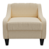 The Di Caprio Curve Fauteuil boasts a sleek design with a curved backrest that offers both comfort and elegance. Upholstered in a neutral beige fabric with tapered wooden legs, this armchair is perfect for creating a modern, cozy atmosphere in any living space.