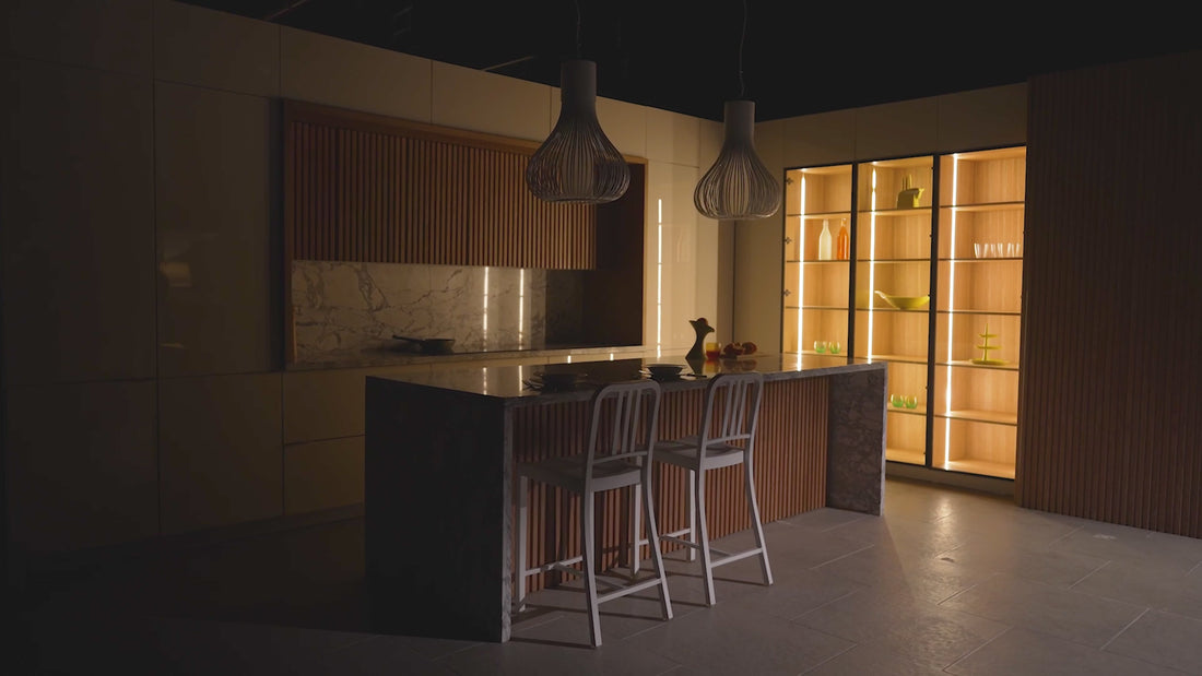This kitchen is available for display at our showroom at El Majarrah Mall, Sheikh Zayed. Take a tour, choose your kitchen, and we will deal with the rest.